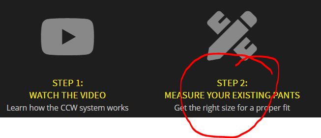 Here’s what we recommend to “in-betweeners.” Buy the smaller and buy the larger pants. Try both on . . . and then return the one that isn’t to your liking. This requires an extra step of inconvenience, but it ultimately saves time and money with shipping and exchanges. This approach has satisfied the major of CCW Breakaways clients.